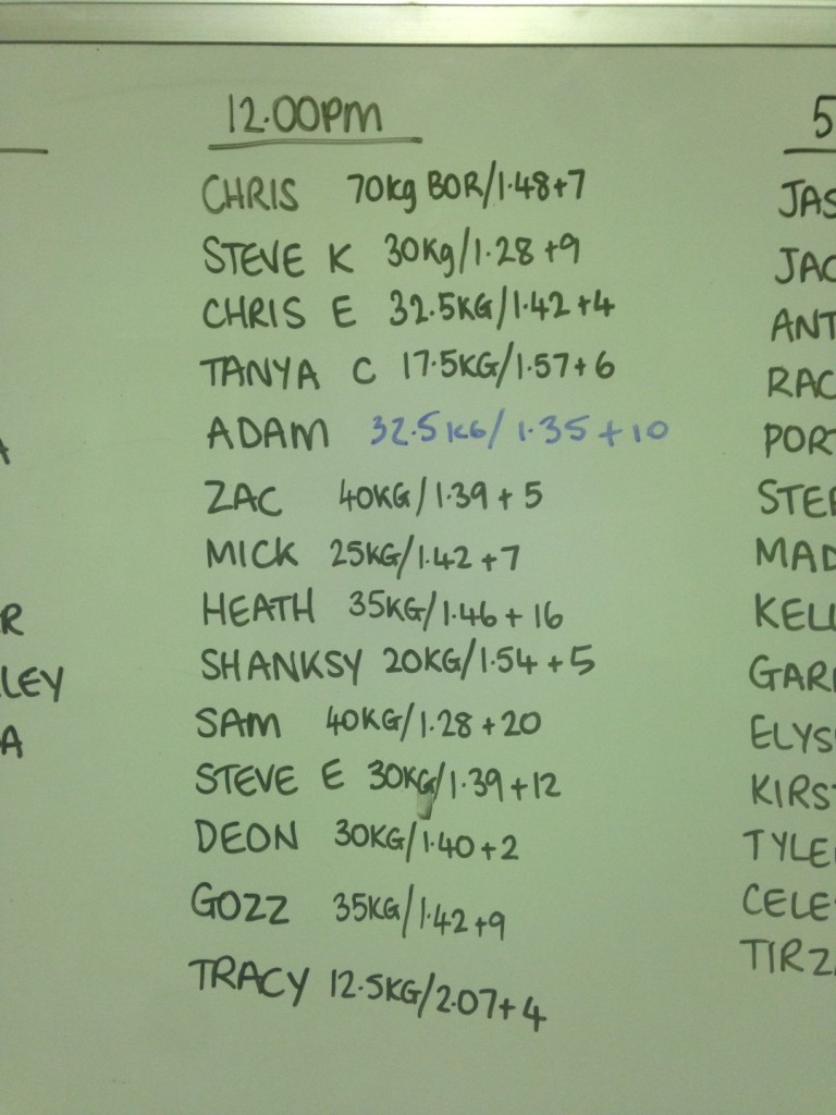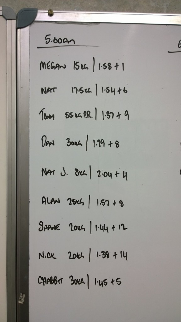 For the row – this is a volume day where the aim is to work hard but not to have any greater variation in time than 10 seconds from fastest to slowest row. This doesn’t mean that you should be cruising, but you should also refrain from going all out unless you have extremely good rowing ability.