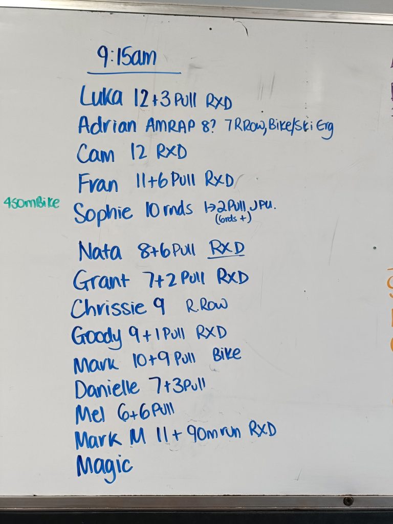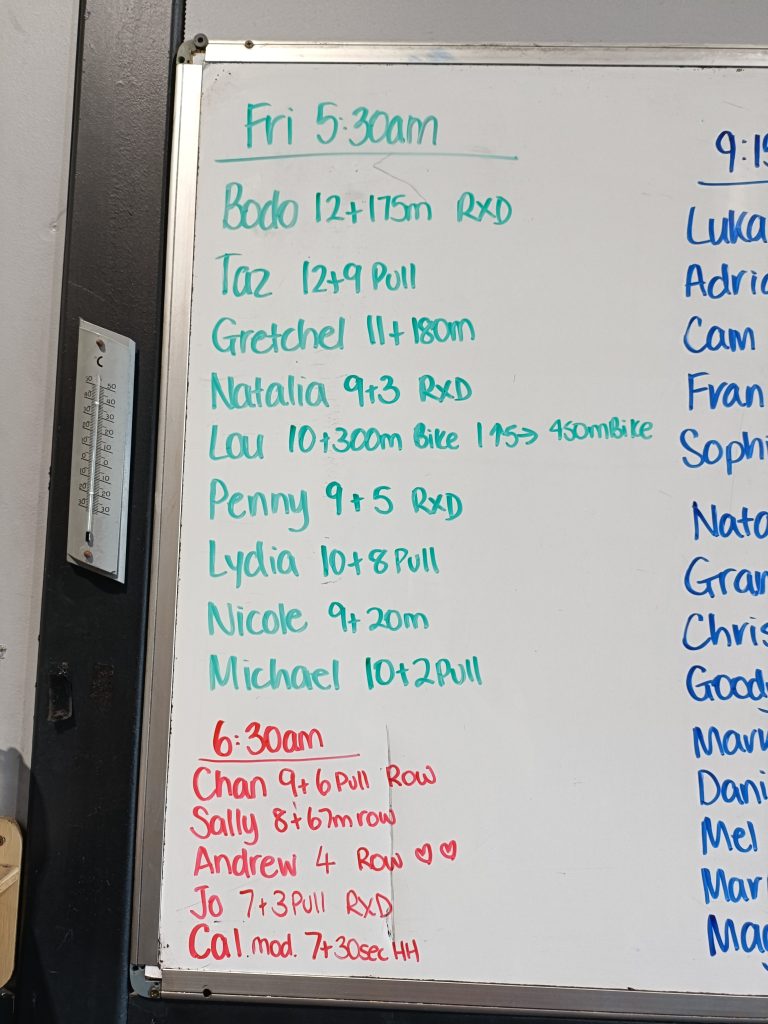 A. Increment as far as possible in 20 minutes: Strict Pull-ups (1-2-3-4-5...) Run 180m B. Mobility Photo: Karla smashing Deadball over shoulder in our Masters & Apprentice comp. Photo courtesy of @GrantWilliamsPhoto