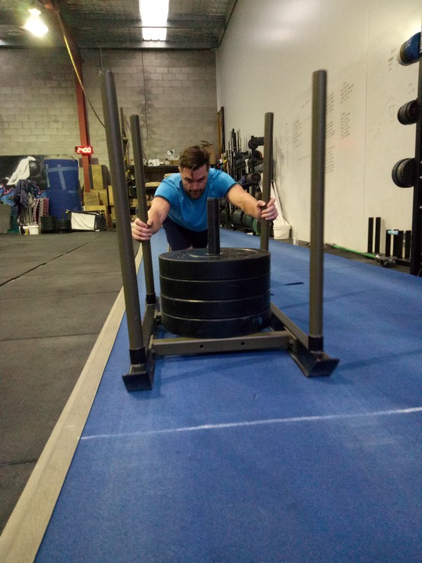 WOD: Thursday WODs August 1, 2018 5-7 rounds, each for time: 10m Sled Push (heavy) 30m Bear Crawl 5 x 10m Slam Ball Shuttle 250m Row *Rest as necessary between rounds.